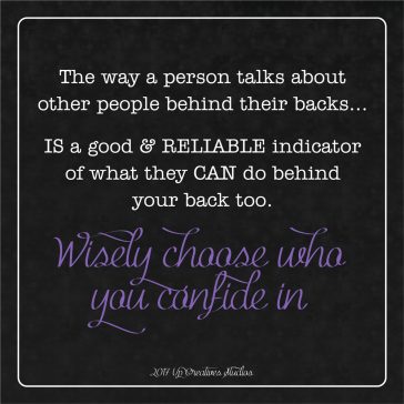 “The way a person talks about other people behind their backs… is a good and reliable indicator of what they can do behind your back too. Wisely choose who you confide in.” We all know of, or had … Read More