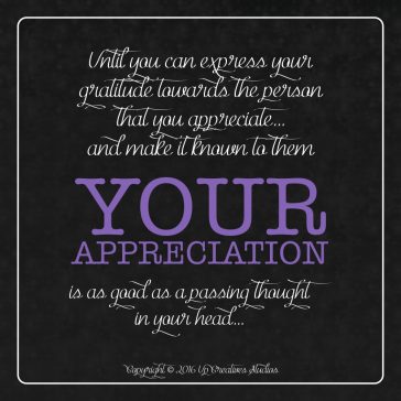 “Until you can express your gratitude towards the person that you appreciate… and make it know to them, your appreciation is as good as a passing thought in your head…”