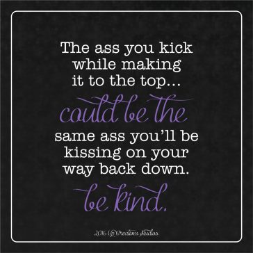 The ass you kick while making it to the top… could be the same ass you’ll be kissing on your way back down. Be kind.