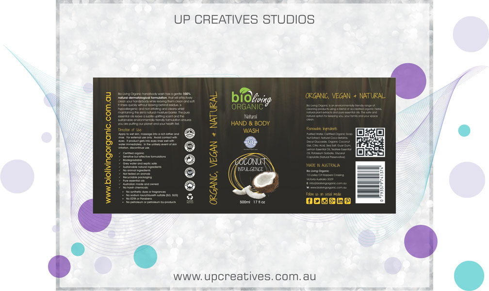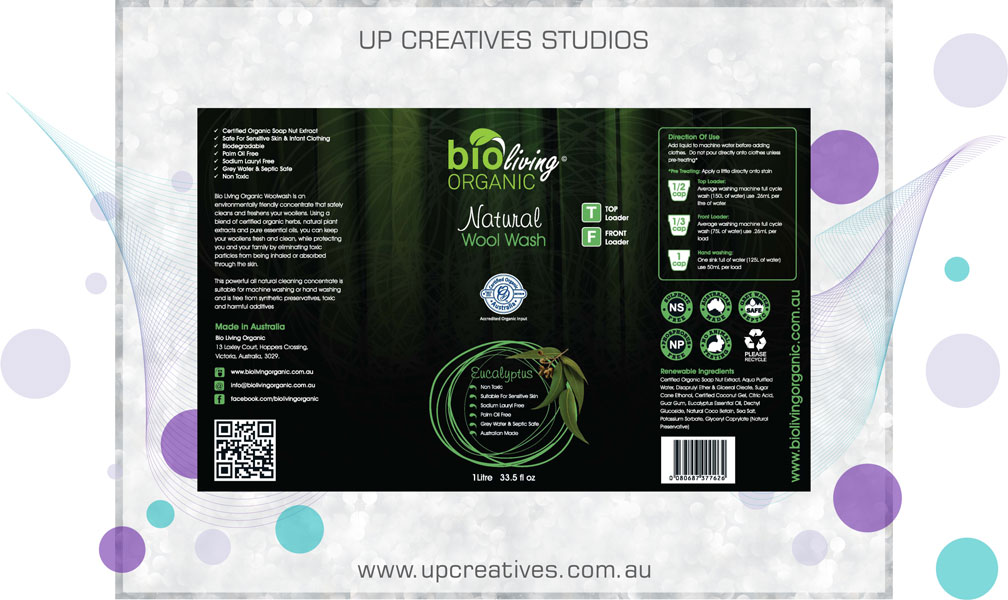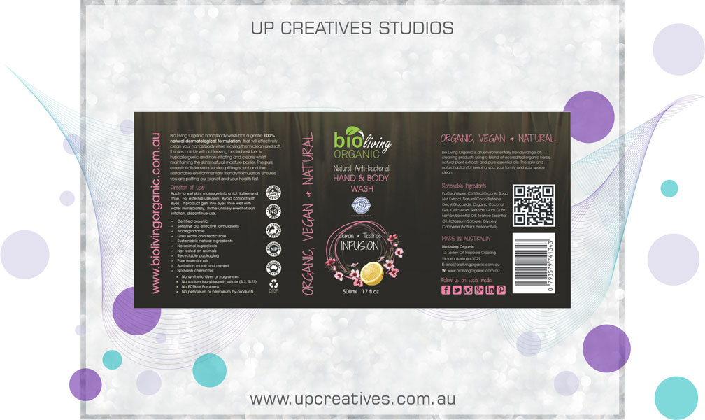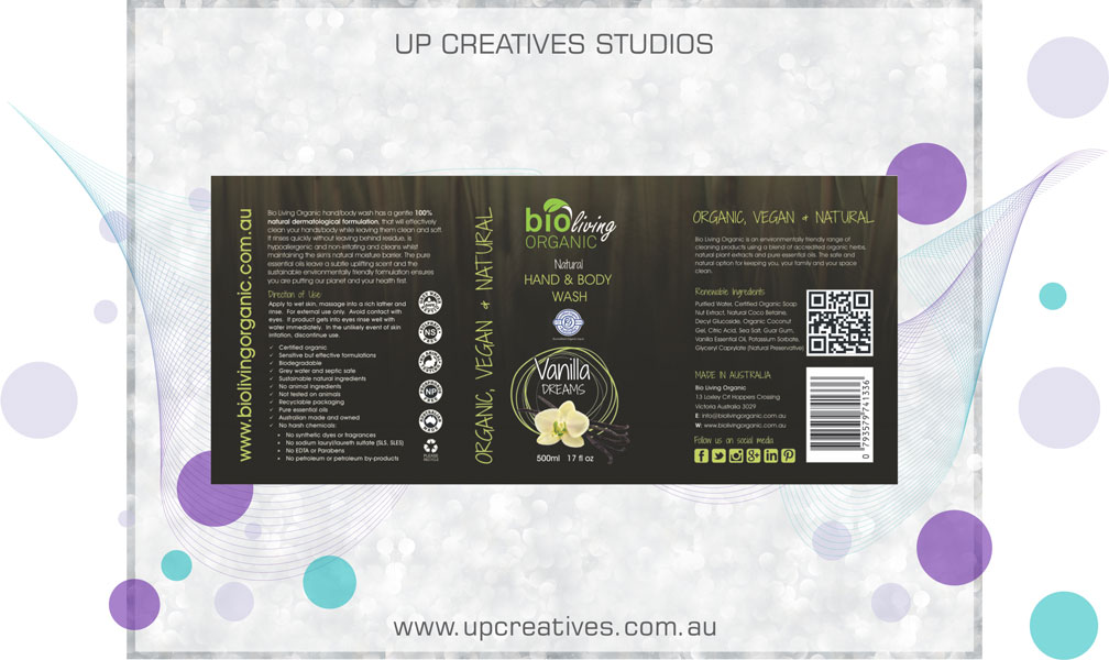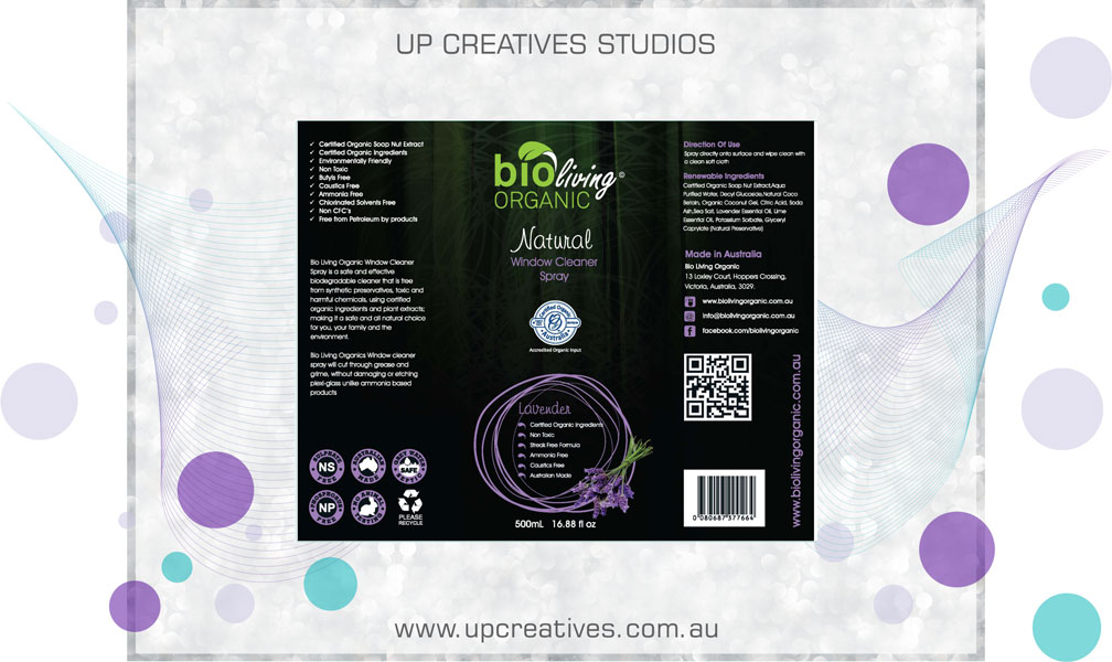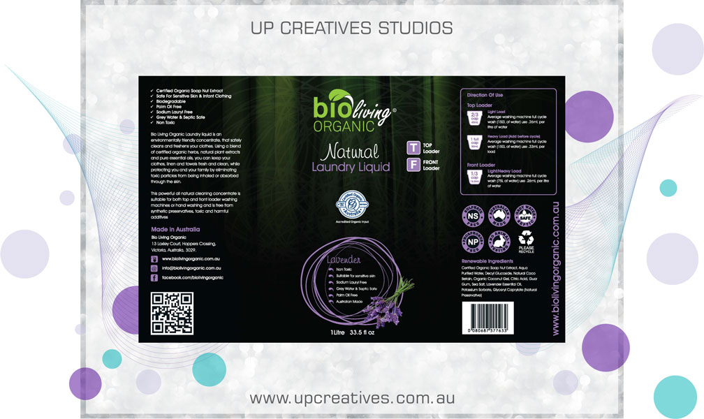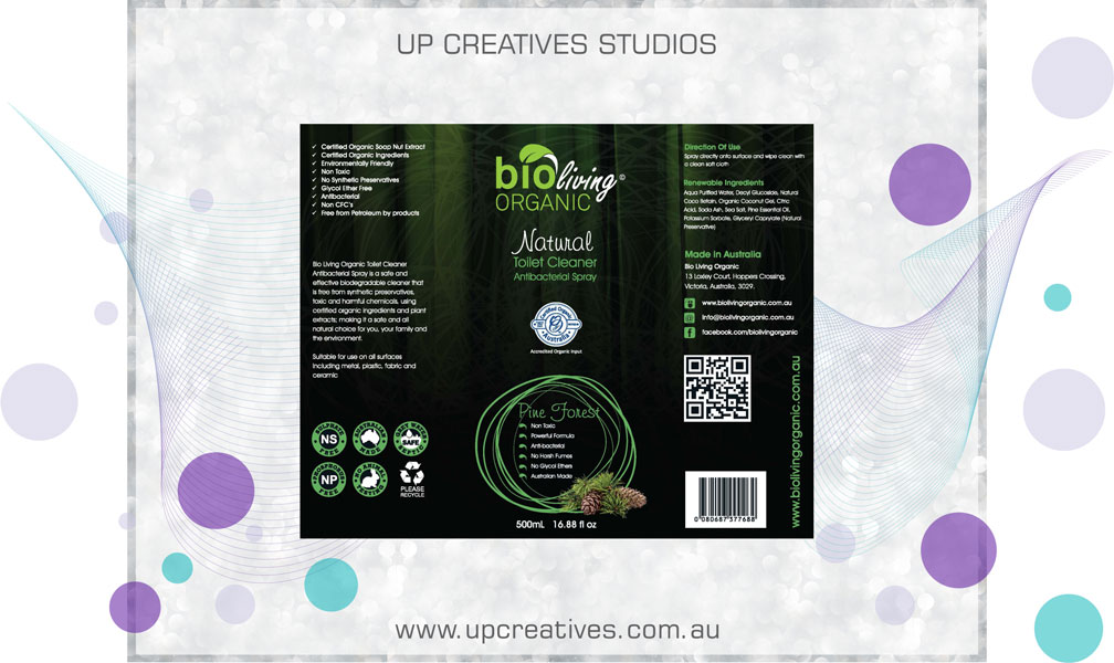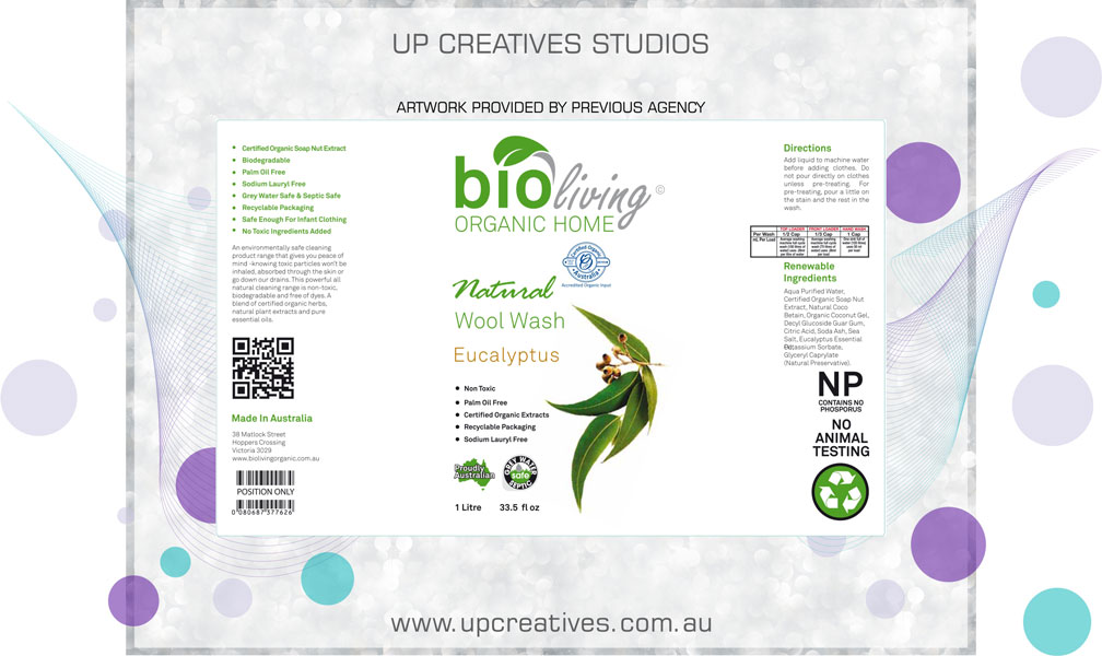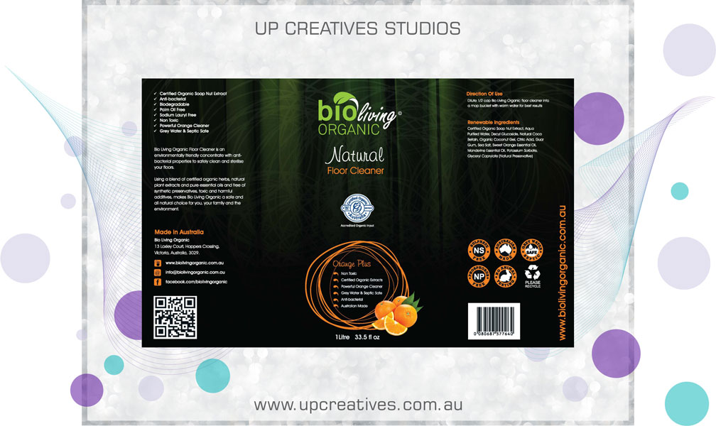 Bio Living Organic is a Melbourne based organic cleaning product manufacturer. A family owned business that approached Up Creatives Studios initially for a quote for the production of labels for an existing design that was organised by another marketing agency. Upon final checking of the supplied artwork for prepress and production, it was discovered that the artwork was not print ready and this was conveyed to the clients. The clients were appreciative that this error was picked up by Up Creatives Studios, however they were disappointed in the service they had received by the external agency that had managed their brand prior.